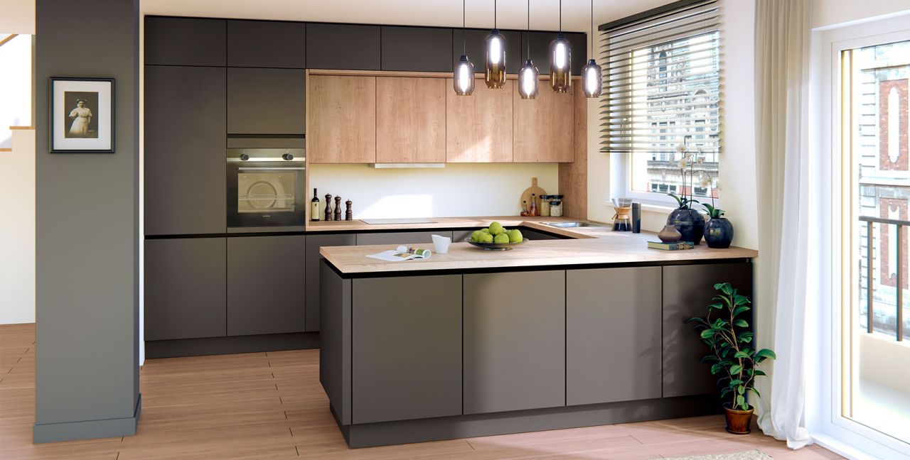 Inklusive Einbaubackofen in Schwarz / Edelstahl Siemens HB517GBS3 Energieeffizienzklasse A+, Glaskeramik Kochfeld Siemens ET645HN17E, Flachschirmhaube Elica ELITE 14 60-D Energieeffizienzklasse D, Kühlschrank Laurus LKG88E Energieeffizienzklasse E, Einbau-Designspüle Elleci Logik 300, XL-Schränken, Unterschrank mit Großraumauszügen.